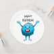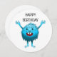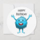 Monstruo esponjoso y lindo en la tarjeta de cumpleaños redonda.