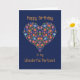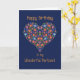 Tarjeta de cumpleaños de bonito para un socio, con un patrón floral en forma de corazón en un fondo azul profundo, inspirado en el arte folclórico de Europa del Este. Parte de la colección "Corazón popular" de Posh & Painterly.