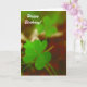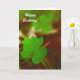 Una hermosa fotografía de dos vibrantes tréboles verdes. Los colores verde y rojo, en la fotografía, se complementan bien. En la tarjeta, dice, "Feliz Cumpleaños". Perfecto para la época de San Patricio, o para cualquiera que ame el color verde, o cosas irlandesas. Este producto es personalizable, por lo que puede agregar su propio texto e imágenes. Personalice esta tarjeta usted mismo, si lo desea.