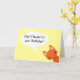 Una tarjeta de cumpleaños con un simple ilustracion digital de un zorro lindo aprendiendo y diciendo "¡Hey! ¡He oído que es tu cumpleaños!" en un fondo amarillo. El interior es un amarillo más claro y tiene al pequeño zorro de nuevo al lado del texto "¡Que tenga un día maravilloso!" Todo el texto de la tarjeta es totalmente personalizable, por lo que puede hacerlo tan personal como desee.
