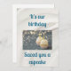 Una pequeña carta divertida para desear a tu gemela un feliz cumpleaños. letra verde azulada, dos pastelitos. "es nuestro cumpleaños, te salvé un quequito"... el mensaje es completamente personalizable.