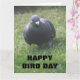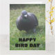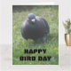Esta tarjeta de cumpleaños muestra una fotografía de una pichón salvaje tomada en mi jardín trasero. El pájaro estaba picando en el pasto buscando semillas que habían sido derribadas de un alimentador de aves. La irritabilidad de las plumas es claramente visible en la foto. El atrevido texto negro en la parte delantera de la tarjeta dice "Feliz Día de las Aves" y dentro hay un saludo que dice "Un pequeño pájaro me dijo que es tu cumpleaños. Este texto tiene el personalizable de permitirle cambiar el saludo si lo desea.