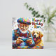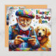 Ron está celebrando su cumpleaños. Está jugando a juegos en su teléfono, y su recuperador dorado se sienta fiel a su lado. El mensaje de cumpleaños de colores vivos en la tarjeta es "Feliz cumpleaños, Ron". En el reverso de la tarjeta hay una pequeña versión de este cuadro y mucho espacio para escribir un mensaje personal de cumpleaños para que Ron lo disfrute.