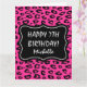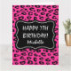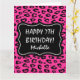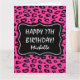 Tarjeta de cumpleaños con estampado de leopardo rosa grande extra grande para mujeres, personalizada con nombre. Tarjeta de cumpleaños con patrón de manchas de animales salvajes con nombre personalizado. Deseos y color de fondo personalizables. Idea divertida para fiesta de cumpleaños Sweet sixteen, por ejemplo. Tarjeta de felicitación gigante XL con color rosa neón intenso.