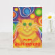 ¡Bebé! Un gato amarillo y naranja a rayas con bigotes giratorios y un fondo sicodélico con motivos de arco iris. Tarjeta de felicitación con un diseño de personalizable amarillo, naranja, rojo, azul, verde, rosa, púrpura y blanco para que pueda personalizar con su propio texto, imágenes e ideas.El texto puede cambiarse fácilmente utilizando la plantilla proporcionada o hacer clic en el botón "Personalizar" para realizar más modificaciones. Dibujo original de lápiz de colores realzados digitalmente por Jess Perry.