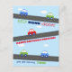 Tarjeta de cumpleaños infantil de coche rojo y azu