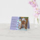 Una fotografía adorable del color de un Yorkshire Terrier que lleva un gorra de la torta de cumpleaños adorna el frente de esta tarjeta. Un fondo de la lila con un diseño y un texto retros que lee: Los "cumpleaños son la manera de la naturaleza de decirnos comer más torta." El texto adaptable interior lee: ¡"Ninguna tarjeta de cumpleaños lleva a cabo más amor que esto porque ha enviado con un abrazo y ha sellado con un beso! Feliz cumpleaños".