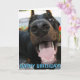 Tarjeta negra y del moreno del doberman de la foto de felicitaciones. El texto delantero lee "feliz cumpleaños", texto interior lee "esperanza que usted tiene un gran día!" El texto puede ser modificado para requisitos particulares.