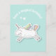 NewParkLane - Tarjeta postal de cumpleaños adorable para niños, con un dulce unicornio, que dice: '¡Tenga un cumpleaños mágico!', contra un suave fondo verde azulado (el color se puede alterar), y una plantilla de texto para su nombre en el interior. para un diseño personalizado.
