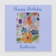 Tarjeta de cumpleaños magnética de flores y globos