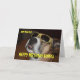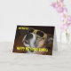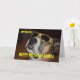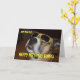 Cierre máximo del tiro de la tarjeta de cumpleaños del perro para arriba con las gafas de sol amarillas encendido con su lengua que se pega hacia fuera.