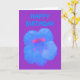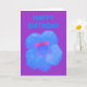 Esta tarjeta retro de cumpleaños incluye una fotografía de una flor de Nasturtium. La foto ha sido pintada artificialmente, lo que ha resultado en una flor azul brillante con algunos tonos rosa y morado. El fondo morado desmarca la flor maravillosamente. Hay un texto de personalizable azul brillante en la parte delantera de la tarjeta que dice "cumpleaños feliz". A cualquiera que viviera los años 60 le encantará esta carta retro brillante. A los niños también les encantarán sus colores vivos.