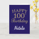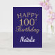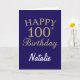 Tarjeta de cumpleaños número 100 del Purpurina Navy Blue y Gold con nombre personalizado. Para una mayor personalización, haga clic en el botón "Personalizar" y utilice nuestra herramienta de diseño para modificar esta plantilla.