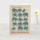 Una divertida tarjeta de cumpleaños número 15 para un primo, con siluetas de quince elefantes, cada una con un patrón de Paisley, sobre un fondo de Burlap. Parte de la colección "Heffalumps" de Posh & Painterly.