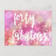 NewParkLane - Tarjeta postal, con divertida cita 'Cuarenta y Fabulosa' en tipografía de letra script trendy, sobre un fondo rosa brillante y glamuroso.