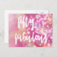 NewParkLane - Tarjeta postal moderna en blanco y negro, con la divertida frase 'Cincuenta y fabuloso' en una tipografía de letra cursiva de moda, sobre un fondo glamuroso con brillo rosa.