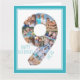 Tarjeta fotográfica única y personalizada de noveno cumpleaños para un niño. La plantilla de fotos está configurada para que añadas tus fotos favoritas a este collage de fotos número 9 más una foto especial extra dentro. También puede añadir su nombre al frente y personalizar el saludo de cumpleaños dentro. El diseño tiene un tipo de letra delgado, una tipografía caprichosa con una paleta de colores azul turquesa y blanco. El mensaje interior es totalmente editable y actualmente dice "Amor y alegría a nuestro maravilloso hijo en su noveno cumpleaños". Por favor, navegue por mi tienda por más años.