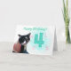La pintura del número cuatro en verde con cintas giratorias rosadas, con una foto de nuestro gato de esmoquin blanco y negro vestido de rosa y blanco, con el saludo, Feliz Cumpleaños, está impresa en las tarjetas de felicitación personalizado. Gracias por comprar CherylsArt en Zazzle: http://www.zazzle.com/CherylsArt*/