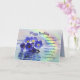 Hermoso olvido azul arrojado a la deriva en un lago con un arco iris detrás. Un bello versículo completa perfectamente esta tarjeta única.