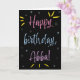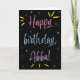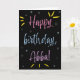 Llamas a tu padre Abba, no a papá. (Abba significa padre en hebreo y bengalí). ¡Imaginen lo emocionado que estará Abba de recibir una tarjeta de cumpleaños dirigida especialmente a él! A tu abba también le encantará el colorido diseño inspirado en fuegos artificiales de esta tarjeta (amarillo, rosa, azul y morado sobre un fondo negro) que dice "¡Feliz cumpleaños, Abba!"
