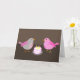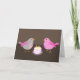 Pájaros rosas y grises con torta de cumpleaños. Añade tu propio texto.