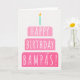Tarjeta de cumpleaños para Bampás. Si llamas a tu padre Bampas en vez de a papá, esta tarjeta de cumpleaños es perfecta para él. (Bampás significa padre en griego.) A tus bampas también les encantará el diseño rosa oscuro gradiente de esta tarjeta de cumpleaños con un pastel de cumpleaños que dice "¡Feliz cumpleaños, Bampás!" ¡Haz personalizable esta carta! Haga clic en "Editar diseño", "Inferior/Derecha: Texto e imágenes", "Texto" y "Añadir texto" para escribir su propio personalizado, mensaje personalizado a Bampás dentro!