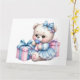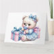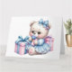Tarjeta de cumpleaños feliz para bebé. Oso de Teddy lindo sentado con muchos regalos envueltos. Una adorable tarjeta de cumpleaños para niños. Esta tarjeta está en blanco dentro para su propio mensaje. También disponible como descarga digital para su transferencia a otros productos.