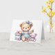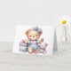 Tarjeta de cumpleaños feliz para bebé. Oso Teddy lindo sentado con regalos y juguetes. Una tarjeta infantil adorable. Esta tarjeta está en blanco dentro para su propio mensaje. También disponible como descarga digital para su transferencia a otros productos.