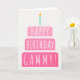 Tarjeta de cumpleaños para Gammy. Si llamas a tu abuela Gammy en lugar de a la abuela, esta tarjeta de cumpleaños es perfecta para ella. A tu gammy también le encantará el diseño rosa oscuro gradiente de esta tarjeta de cumpleaños con un pastel de cumpleaños que dice "¡Feliz cumpleaños Gammy!" ¡Haz personalizable esta carta! Haga clic en "Editar diseño", "Inferior/Derecha: Texto e imágenes", "Texto" y "Añadir texto" para escribir su propio personalizado, mensaje personalizado a Gammy adentro!