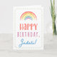 Llamas a tu abuela Jadati, no a la abuela. (Jadati significa abuela en árabe). ¡Imagina lo emocionado que estará Jadati de recibir una tarjeta de cumpleaños dirigida especialmente a ella! A tu jadati también le encantará el lindo diseño de arco iris de color agua inspirado en el boho que dice "¡Feliz cumpleaños Jadati!" ¡Haz personalizable esta carta! Haga clic en "Editar diseño", "Inferior/Derecha: Texto e imágenes", "Texto" y "Añadir texto" para escribir su propio personalizado, mensaje personalizado a Jadati dentro!