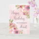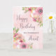 Tarjeta de cumpleaños para la tía con hermosas flores de acuarela rosadas y verso reflexivo.