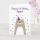 Tarjeta de cumpleaños para Mami. Si llamas a tu madre Mami en vez de a tu mamá, esta tarjeta de cumpleaños es perfecta para ella. (Mami significa madre en español, alemán, panyabí y esloveno). A tu marami le encantará el diseño de esta tarjeta de cumpleaños, adorable, moderno, colorido, al estilo escandinavo, que incluye un OSO de peluche marrón y gris con un gorra fiesta morado y una corbata y un confetti rosa, amarillo y azul con el texto "¡Feliz cumpleaños, Mami!" ¡Haz personalizable esta carta! Haga clic en "Editar diseño", "Inferior/Derecha: Texto e imágenes", "Texto" y "Añadir texto" para escribir su propio personalizado, mensaje personalizado en Mami Inside!