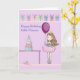 Tarjeta de cumpleaños para niñas, globos y pastele