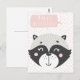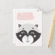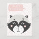 NewParkLane - Tarjeta postal, con un adorable mapache negro, blanco y gris en acuarela, con un globo de texto rosa con un deseo de "Feliz Cumpleaños", sobre un divertido fondo abstracto de color rosa claro y blanco.