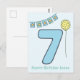 NewParkLane - Tarjeta de cumpleaños para una niña de siete años, con un gran número siete verde y con un fondo azul con lunares blancos y una guirnalda colorida verde y azul turquesa, y un dulce deseo de "¡Feliz Cumpleaños!".