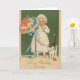 Tarjeta de felicitación Vintage / Victorian Birthday. Pequeña y adorable niña y gatito con un gran ramo de flores. ¡Me encantan los saludos de cumpleaños! ¡Hermosa tarjeta de cumpleaños de época!