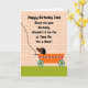 Tarjeta de cumpleaños para papá del mascota de tu familia Dachund, que quiere que papá lo lleve a pasear. La tarjeta tiene un fondo de diseño de melocotón, con un perro de Dachund ilustrado en un vagón naranja. Puede agregar el nombre de su perro en la última línea interior, si lo desea. Las palabras en el frente son permanentes. Gracias a Creative Fabrica por algunos de los elementos del diseño.