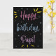 Llamas a tu padre Papi, no a papá. ¡Imagina lo emocionado que estará Papi al recibir una tarjeta de cumpleaños dirigida especialmente a él! A tu papá también le encantará el colorido diseño inspirado en fuegos artificiales de esta tarjeta (amarillo, rosa, azul y morado en un fondo negro) que dice "¡Feliz cumpleaños, Papi!"