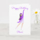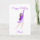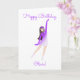 Desea un feliz cumpleaños al entusiasta del patinaje con esta tarjeta que muestra a un patinador en una pose elegante. ¡Perfecta para una fiesta de patinaje!