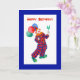 Tarjeta de cumpleaños para un niño de 4 años, luminosa y alegre, con un payaso con globos, de un ilustracion pintado a mano por Judy Adamson. Por favor, siéntase libre de cambiar el texto interno a su gusto.