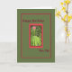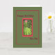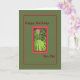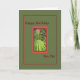 Tarjeta verde medio con un borde rojo que rodea plantas y flores. Tarjeta perfecta para enviar a tu Pen Pal.