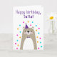 Tarjeta de cumpleaños para Safta. Si llamas a tu abuela Safta en lugar de la abuela, esta tarjeta de cumpleaños es perfecta para ella. (Safta significa abuela en hebreo). A tu safta le encantará el diseño de esta tarjeta de cumpleaños de estilo escandinavo, moderno, colorido, adornado con un osito de peluche marrón y gris con un gorra fiesta morado y una cata de bolas, rosa, amarillo y azul con el texto "¡Feliz cumpleaños, Safta!" ¡Haz personalizable esta carta! Haga clic en "Editar diseño", "Inferior/Derecha: Texto e imágenes", "Texto" y "Añadir texto" para escribir su propio personalizado, mensaje personalizado a Safta dentro!