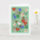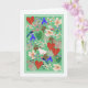 Tarjeta de cumpleaños para tu madre con un diseño colorido de flores, hojas, plantas, conejito y pájaros. Gracias a la solución de deshielo por los elementos del diseño.
