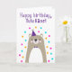 Tarjeta de cumpleaños para Tutu Kāne. Si llamas a tu abuelo Tutu Kane en lugar del abuelo, esta tarjeta de cumpleaños es perfecta para él. (Tutu Kāne significa abuelo en hawaiano). A tu tutu kāne le encantará el diseño de esta tarjeta de cumpleaños, adorable, moderno, colorido, al estilo escandinavo, que incluye un OSO de peluche marrón y gris con un gorra fiesta morado y una corbata y un confetti rosa, amarillo y azul con el texto "¡Feliz cumpleaños, Tutu Kane!" ¡Haz personalizable esta carta! Haga clic en "Editar diseño", "Inferior/Derecha: Texto e imágenes", "Texto" y "Añadir texto" para escribir su propio personalizado, mensaje personalizado a Tutu Kāne dentro!