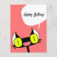 Una carta de cumpleaños alegre y divertida con un gatito personalizado negro con grandes ojos amarillos y una sonrisa alegre y expresiva. Perfecto para desear a un chica especial un feliz y memorable cumpleaños lleno de risas y amor.