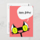 Una carta de cumpleaños alegre y divertida con un gatito personalizado negro con grandes ojos amarillos y una sonrisa alegre y expresiva. Perfecto para desear a un chica especial un feliz y memorable cumpleaños lleno de risas y amor.