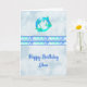 Tarjeta de cumpleaños Zodiac para una Libra. El diseño es un fondo claro y turbio, con escalas azules y verdes en la parte superior con estrellas falsas y brillantes, separadas por las palabras permanentes en el fondo, por un borde de diseño con los mismos colores que las escalas. Gracias a los recortes de diseño y a Pixabay por algunos de los elementos del diseño.