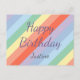 Una tarjeta postal de cumpleaños con rayas diagonales de arcoíris pastel y textos personalizables (que puedes dejar en blanco, si lo prefieres): una buena idea para enviar colores a un amigo por un aniversario, Día de San Valentín, etc.