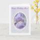 Diseño de una tarjeta creativa que presenta un iris púrpura pastel con un tema de color púrpura y blanco en esta "tarjeta de cumpleaños feliz". Este diseño elegante y colorido hace la elección perfecta para decir "¡Feliz cumpleaños mamá!" y viene completo con un diseño interior a juego con letras de texto completamente personalizable para su propia ocasión especial o bienvenida.