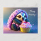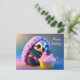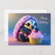 Bebé, lindo, perezoso de dibujos animados comiendo algodón de azúcar, Generación de IA, Feliz Cumpleaños, Tarjeta postal